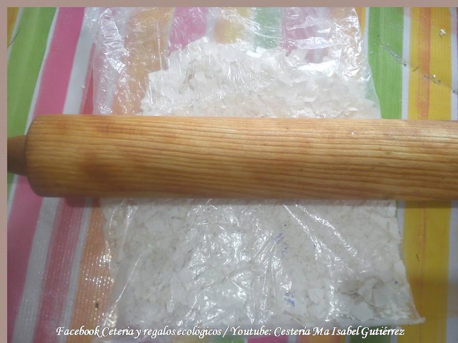 Ya que estén bien secos, metemos en una bolsa de plástico o hule y con algo pesado los trituramos lo mas que podamos...