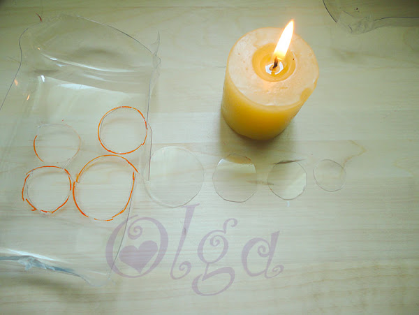 Con la ayuda de los tapones , que tienen tamaños variados, traza círculos en el plástico.