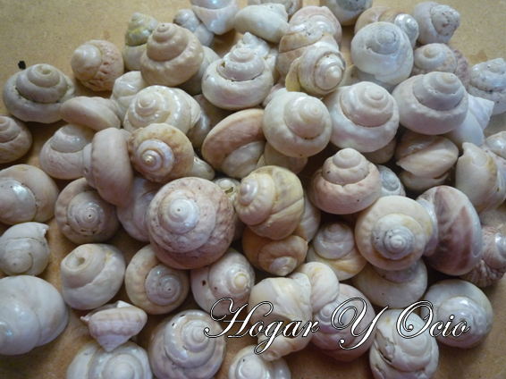 5. Pintamos las caracolas con el esmalte y las dejamos secar.