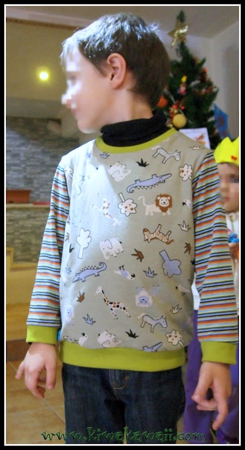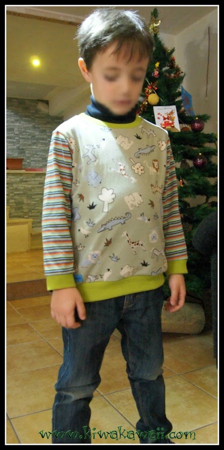 En cuanto vi el diseño de la Heather (ottobre 6/14), supe que la cosería; por su sencillez, porque seguro que era una costura rápida, y porque las fotos son taaaaaaaaan bonitas... Aunque yo tengo dos chicos y es un poco femenina, pero eso no es problema!! La estreché un poco, le dejé el bajo recto (el original es algo más largo y redondeado por detrás), y le puse puño en las mangas y el bajo. Vaya, que poco queda del patrón original, aunque ahora creo que era innecesario.