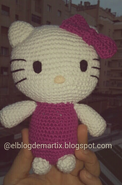 Hacia tiempo que queria tejer una hello kitty, me puse manos a la obra, con ayuda de www.amigurumies.blogspot.com, donde vi el patrón. Cambiando algún detalle, que lo hice a mi manera, aquí tenéis el resultado: