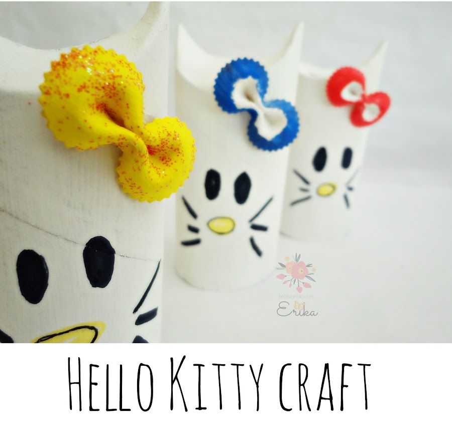 La famosa Hello Kitty , hecha con Reciclaje Creativo , ¡¡ Si !! jamás paso por tu imaginación verla también en versión " tubos de papel higiénico" , vamos a ver los pasos a seguir para tener este resultado tan curioso y bonito ...