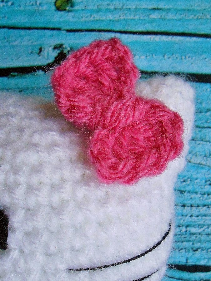 En el patrón original la gatita llevaba una flor, pero a mi me pareció que quedaría mejor este lacito que podéis aprender a hacer vosotros mismos en este tutorial que compartimos ya hace tiempo con vosotros.