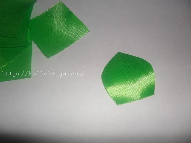 La hojas verdes vamos a elaborar de la cinta raso de 5 cm de ancho.