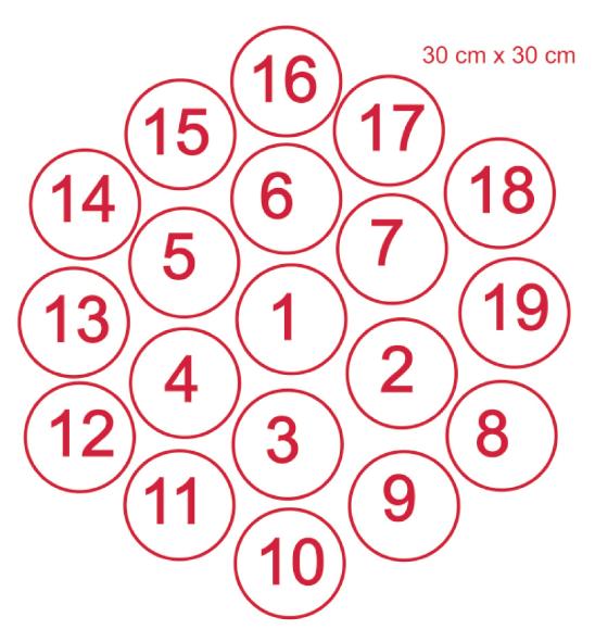 Hacemos lo mismo con cada círculo en orden de los números que tienen (en cada círculo se asegura el hilo antes de pasar al otro).