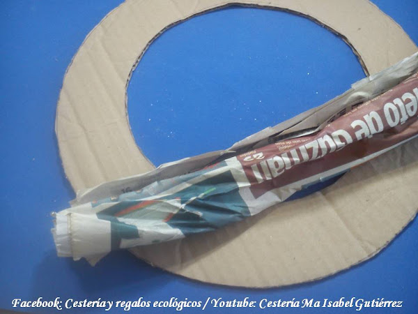 Pegamos este enrollado alrededor del marco redondo, pegando con cinta de papel o cinta de carrocero...