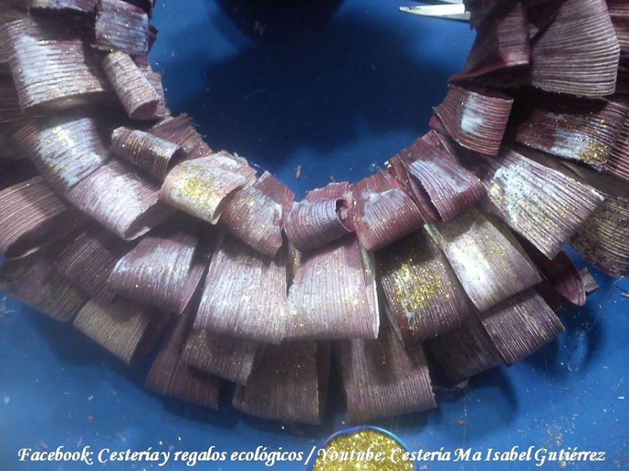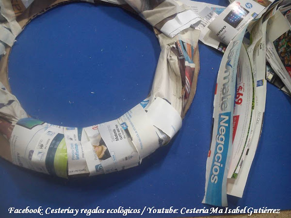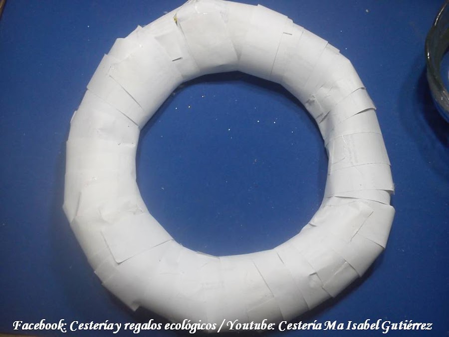 Si tienes papel blanco de oficina reciclado, también cortamos tiras de estas y damos un segundo forrado a la corona, esto le dará una vista mas estética a la corona, sobre todo por detrás...