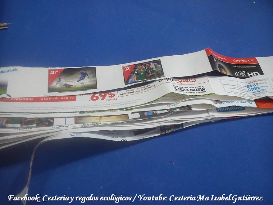 Aparte, empalmamos varias hojas de papel de diario o de revistas y enrollamos como se ve en la imagen...