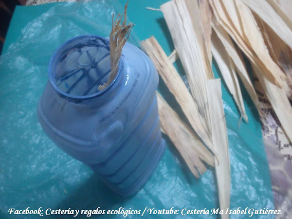 Tomamos las hojas mas anchas y doblamos como se ve en la imagen pegando con un poco de silicón...
