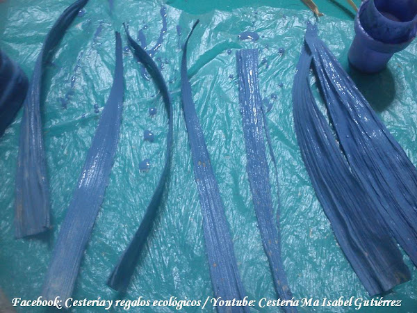 Podemos pintar de dos maneras: en un recipiente amplio ponemos la mezcla de pinturas o si lo prefieres un solo color sólido y sumergimos las hojas por mínimo una hora, mientras mas tiempo las dejemos en la pintura, mas acentuado será el color, yo dejé algunas muy pintadas y otras no tanto, para dar variedad en los tonos. Y otra manera mas fácil es meter la pintura en un recipiente con boca no muy angosta, metemos las hojas, tapamos y agitamos por un rato, sacamos las hojas y ponemos a secar...