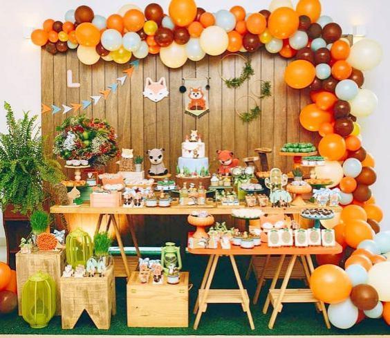 Para decorar un evento de estas características necesitarás objetos naturales que te acerquen al bosque, como platos y bandejas de madera o de colores neutros, tela de arpillera y lienzos, ornamentación natural con plantas, hojas o ramas. Con todo esto, más cintas de colores, globos, y toda tu imaginación, vas a lograr una decoración de ensueño.