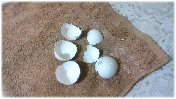 Los cascarones de huevos debemos dejarlos remojar por una hora, sacarle la telita interne y secar...