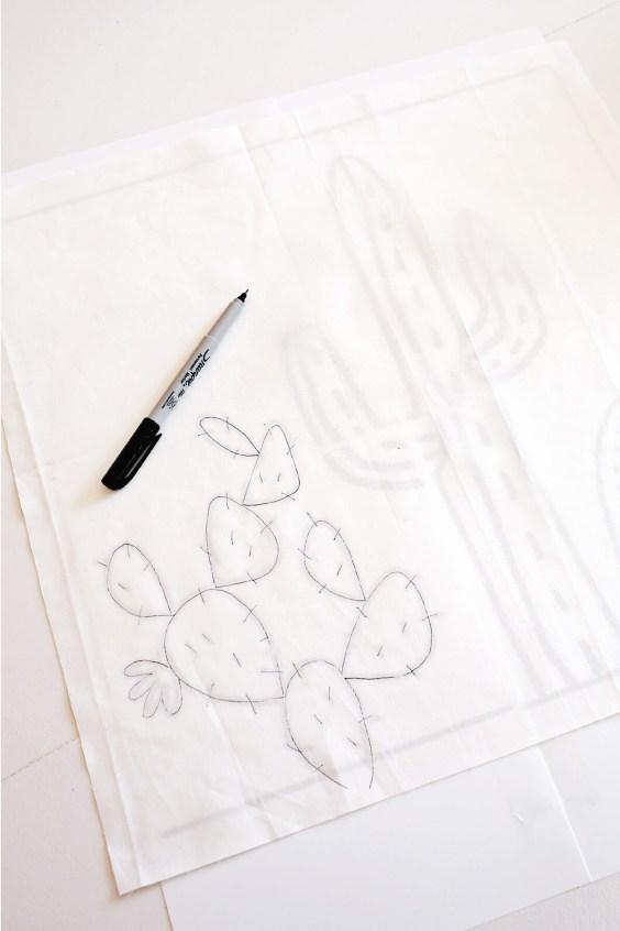 Colocar la tela blanca encima de la plantilla y marcar el diseño con un marcador o un lápiz.