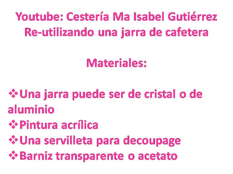 Esta técnica la podemos aplicar en jarras de aluminio y de cristal...