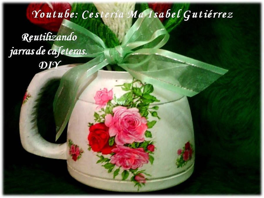 De la misma manera, también corte las pequeñas rosas para pegar alrededor de la jarra, noten como al cortar con nuestras manos quedan como desgarradas de la orilla, eso está bien. Pegaremos a la jarra con pegamento o cola blanca común...