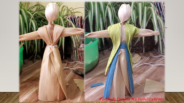 El armado de las figuras es sumamente fácil, solo sobre-poner hojas de maíz encima...