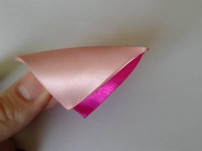 Enrollamos un lado de los triángulos hasta la altura de un cuarto del tamaño inicial.