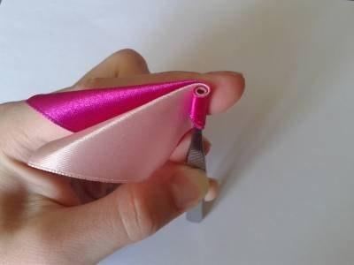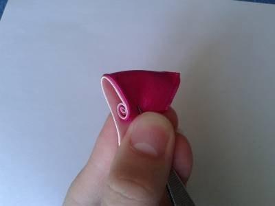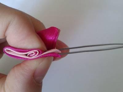 Así queda este hermoso pétalo Kanzashi en las flores.
