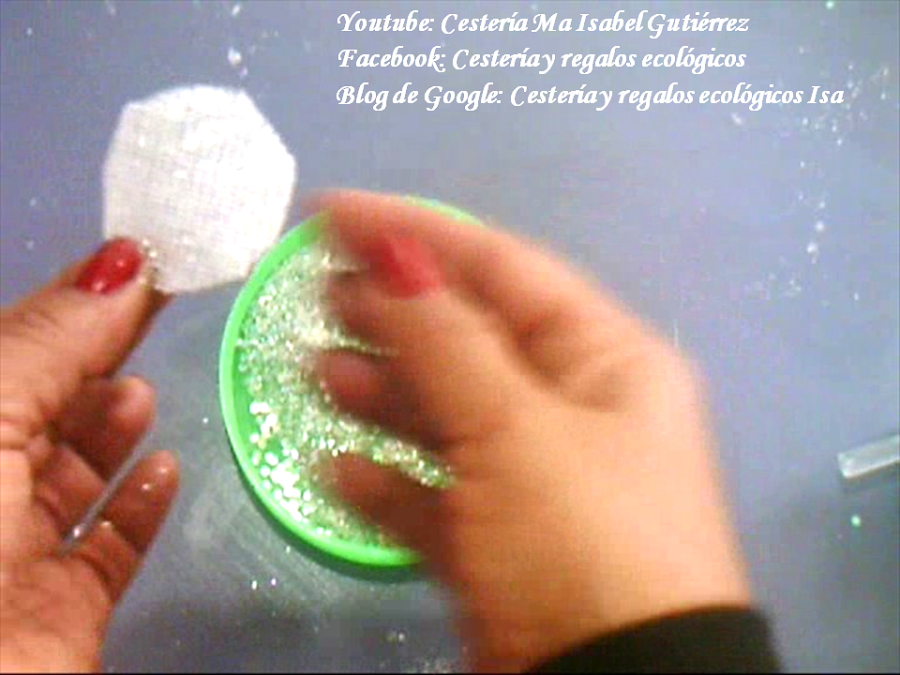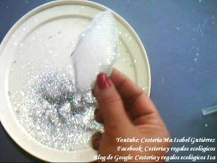 Luego ponemos encima silicón y dejamos caer chaquira blanca y plateada... que quede bien cubierta...
