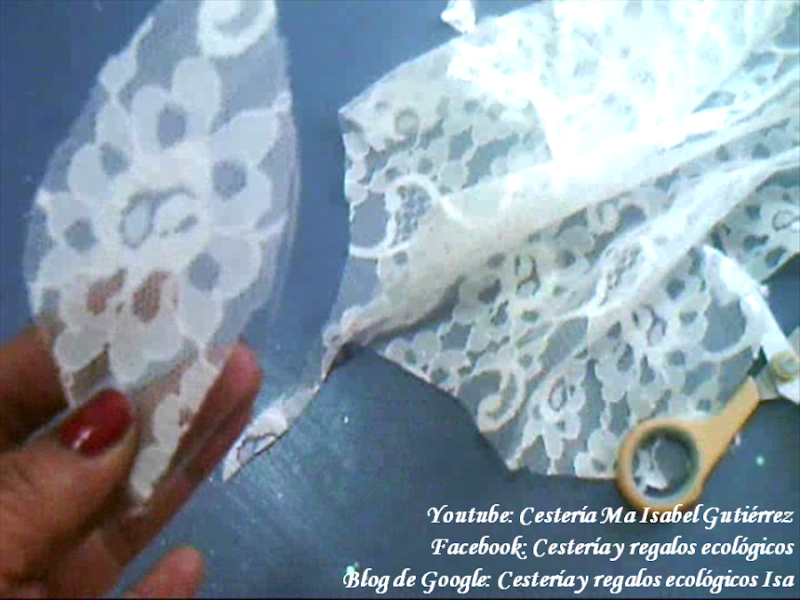 Cortamos los pétalos de encaje. Amigas, si no tienen encajes, cualquier tela bonita y delgada nos puede servir...