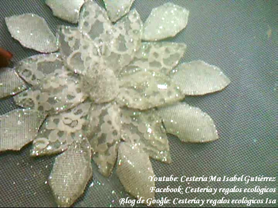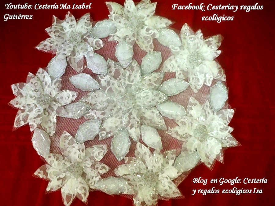 Pegamos las siete flores mas pequeñas alrededor de la flor grande y en medio de cada flor va un pétalo dentado, luego vamos a recortar el tul sobrante, siguiendo las líneas de las flores de la orilla. Para terminar, y cuando sequen y estén bien adheridas las flores al tul, volteamos hacia abajo y vamos a dar una capa de barniz transparente o de acetato líquido, esto es para darle mayor adherencia al plástico con el tul y además el tul se vuelve más duro y firme.... Y listo !!!! Espero les haya gustado y cualquier duda por favor me dejan el comentario abajo y con gusto les responderé. Si te gustan mis trabajos, te agradezco mucho los compartas y me ayudes a difundir el reciclado. Bendiciones !!