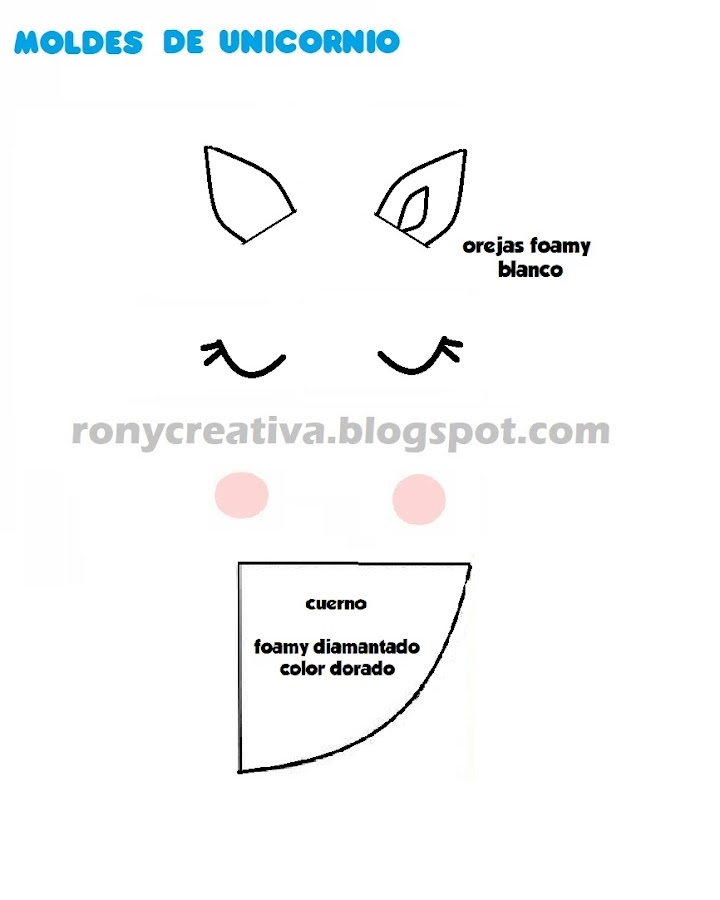 A continuación les comparto los moldes de las piezas que forman este bello unicornio de toalla