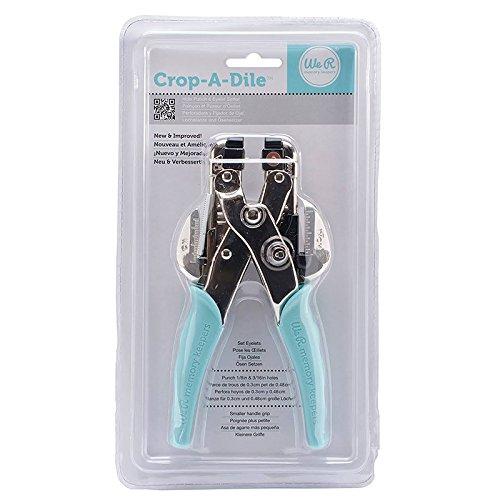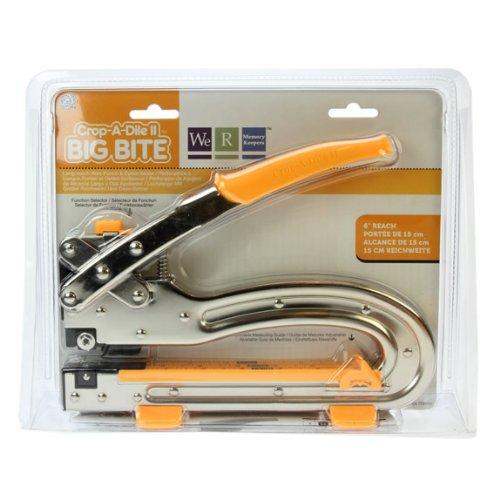 Sirve para hacer agujeros y colocar ojetes o eyelets de 3 y 5 mm. Hay dos modelos: la Crop-a-Dile normal con la que podemos hacer los agujeros hasta 2,5 cm del borde y un precio de 33,72€ y la Big Bite que se diferencia en el tamaño, forma y los agujeros los hace hasta 15,25 cm del borde. Su precio es de 45,40€. Con las dos podemos perforar diferentes materiales como papel, cartulina, cartón, plástico, cuero, metal fino, fieltro… Si podéis, yo os recomiendo la grande, es la que yo tengo, porque dependiendo del trabajo, la Crop se os puede quedar pequeña.