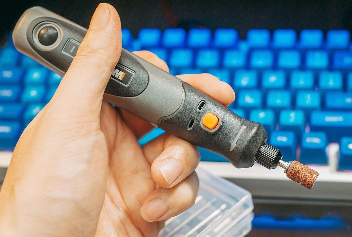 Cuenta con brocas muy finas que van desde 0,7 y 2,0 mm. Este tipo de taladros suelen venir con diferentes sets de brocas, que se utilizan no solo para perforar sino para cincelar y para grabar o tallar. Otros accesorios sirven para pulir en zonas que serían inaccesibles para otras herramientas.