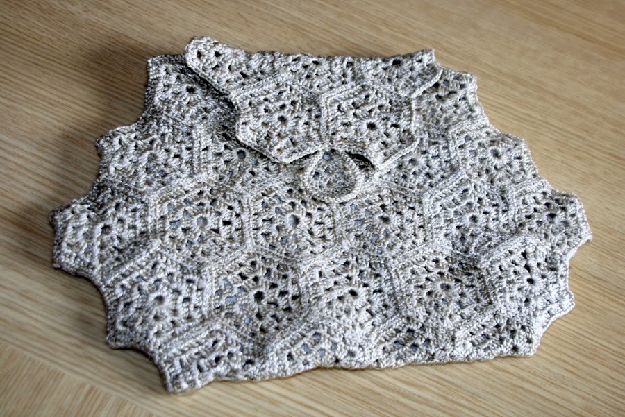 Y así, sucesivamente, en mi bolso empleé 49 hexágonos y para el que le hice a Nuria necesité 38, porque no los he hecho exactamente iguales.