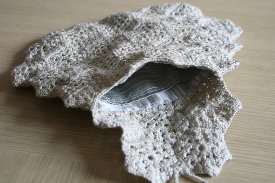 En esta última foto se intuye algo del forro que le puse en el interior a los bolsos para que nada se pueda perder entre las rendijas del ganchillo. Además, así pude hacerle un bolsillo interior en el que guardar el teléfono y las llaves (por ejemplo). Para hacerlo utilicé un retal que tenía en casa y que me pareció muy adecuado.