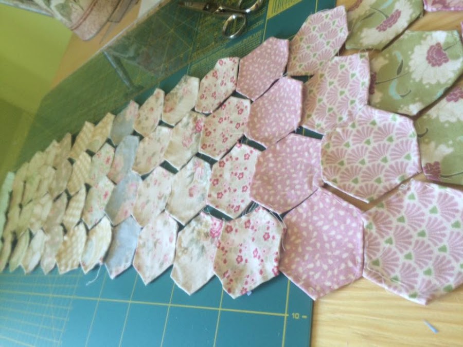 Terminó por "picarme" y rebuscar en mi cajón de telas tildas para empezar ha hacer un montón de hexágonos...