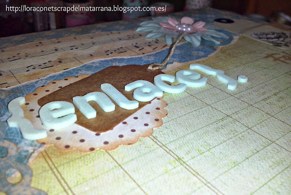 El libro en cuestión, era de madera y pesaba un montón, repleto de las monedas del regalo....pero yo me encargué de hacer la decoración, una decoración scrapera!!! Ambos novios profesores, uno de música y el otro de historia, por lo tanto el título era fácil: Historia de la música...