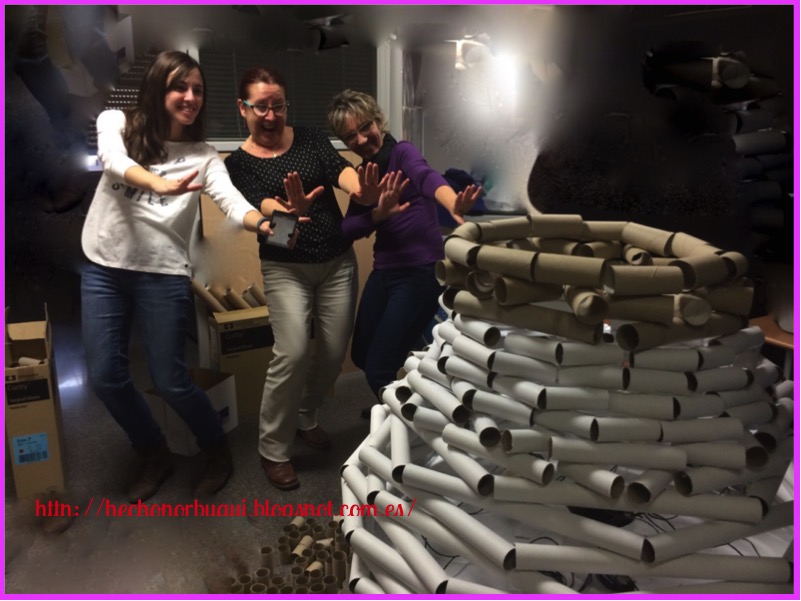 Pusimos un cartel para que todas/os colaborasen, y así lo hicieron. Recogimos montañas de tubos de cartón.