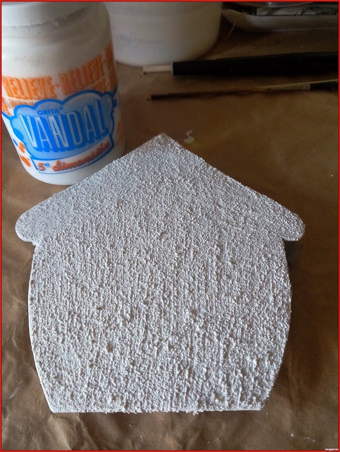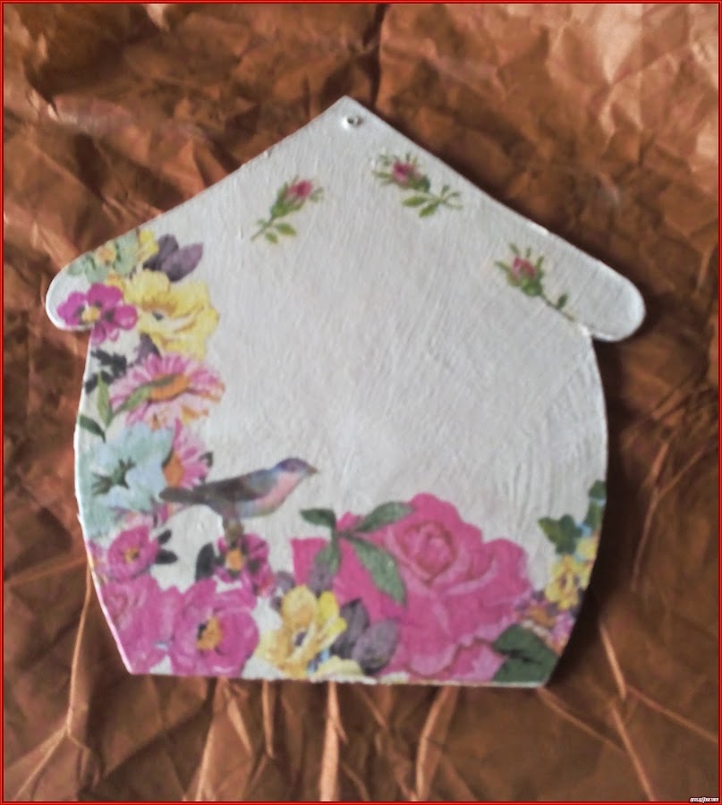 Hace tiempo vi por la red un trabajo en el que adornaba una casita, creo de madera o contrachapado con una forma que me pareció muy simpática( lamento no poder deciros la página ni el enlace, no lo copié). Guarde el dibujo para hacer algo con el y ahora le ha llegado el turno.