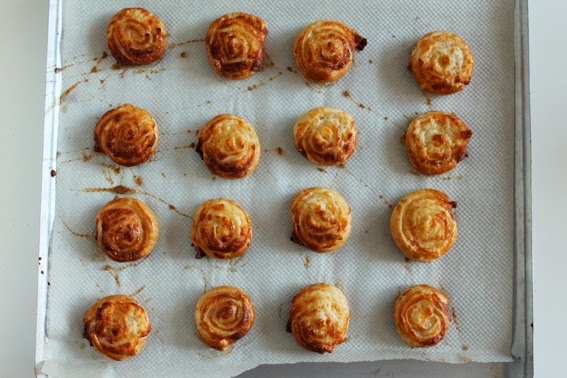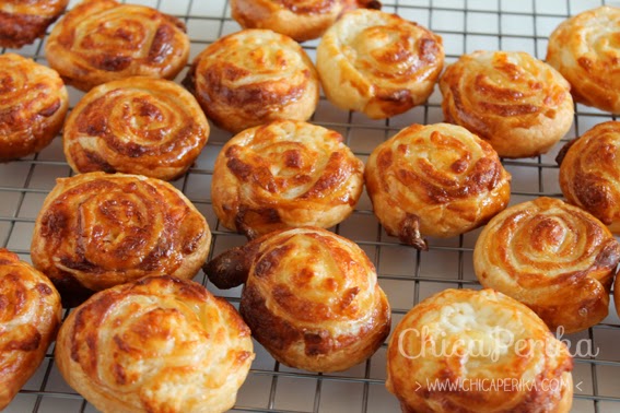 Esto va al horno pre-calentado a 180ºC entre 10 y 15 minutos, o hasta que estén dorados.