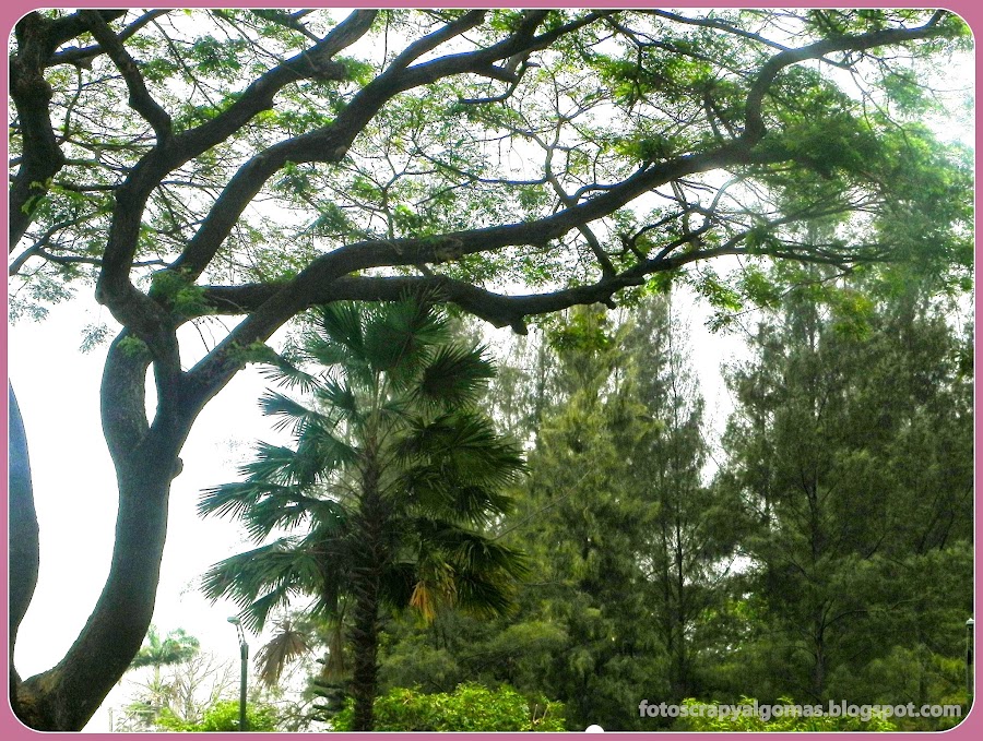 Luego todos los días paso caminando por un parque me llena de aire fresco mis pulmones, me encanta pasar por este parte, su verde, el sonido de los pájaros, observar la gente pasar, me da una armonía muy positiva al inicio del día. Y bueno verán el contraste, aquí los árboles están con sus hojas verdes, y que al ver solo dos estaciones, muy pocos son los árboles que se quedan sin hojas o sus hojas se vuelven amarillas.