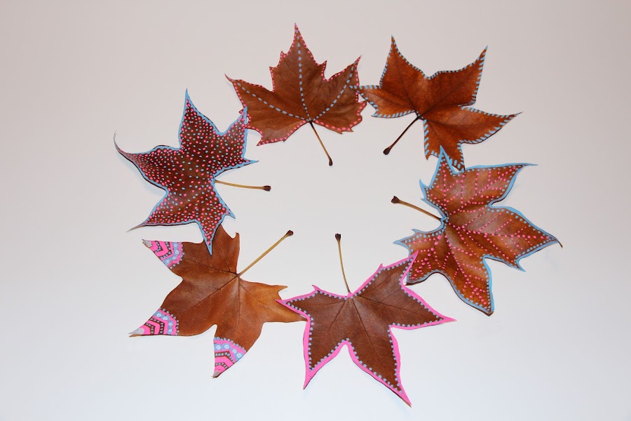 Ya hace días que me había entrado el gusanillo de pintar hojas, pero las hojas de platanero que encuentro cerca de casa, no son del todo bonitas, tienen como manchitas blancas, como si el árbol estuviera enfermo. Así que me he tenido que ir de excursión al bosque para encontrar unas preciosas hojas que serían el lienzo de mis creaciones.