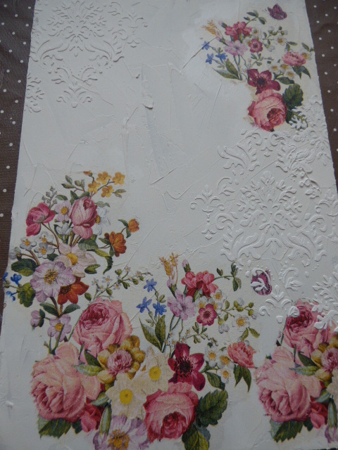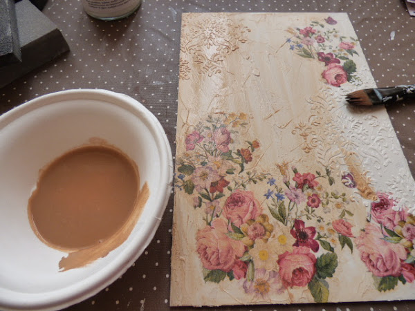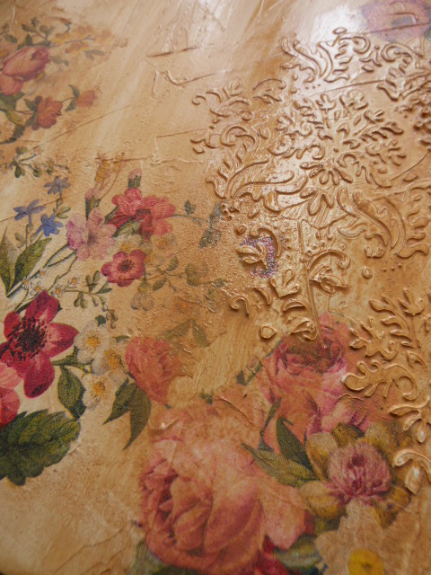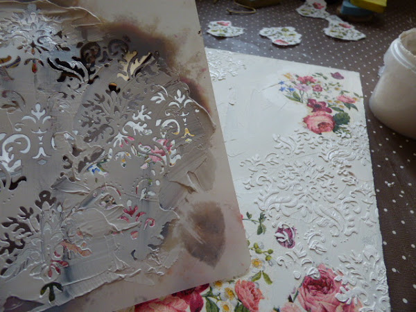 Una vez seco el decoupage, hice los relieves con esta plantilla de arabesco tan bonito