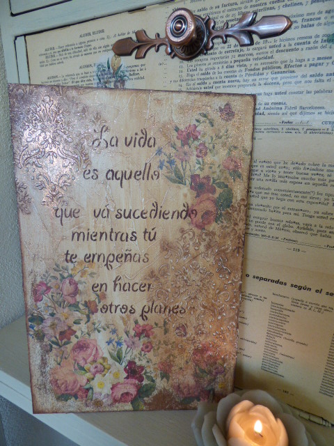 La primera semana no hice nada de nada, de manualidades me refiero (de lo otro ya sabéis que no se para) pero ya la segunda semana se me iban las manos a los pinceles, así que tengo varias cosas hechas que ya os iré enseñando. Además varias cosas encontradas en la calle, madre mia ya veréis¡¡