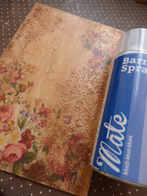 Después del barniz hice los estarcidos y volví a darle una pasadita de spray.