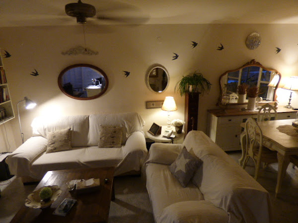 Me dan ganas de seguir por toda la casa pintando golondrinas......cuando esa noche, mis chicos llegaron a casa se quedaron pasmados jaja la verdad es que les gustó mucho¡