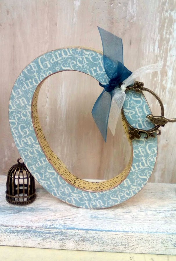 La O se apoya en una jaula metálica y en los cantos le puse washi tape.