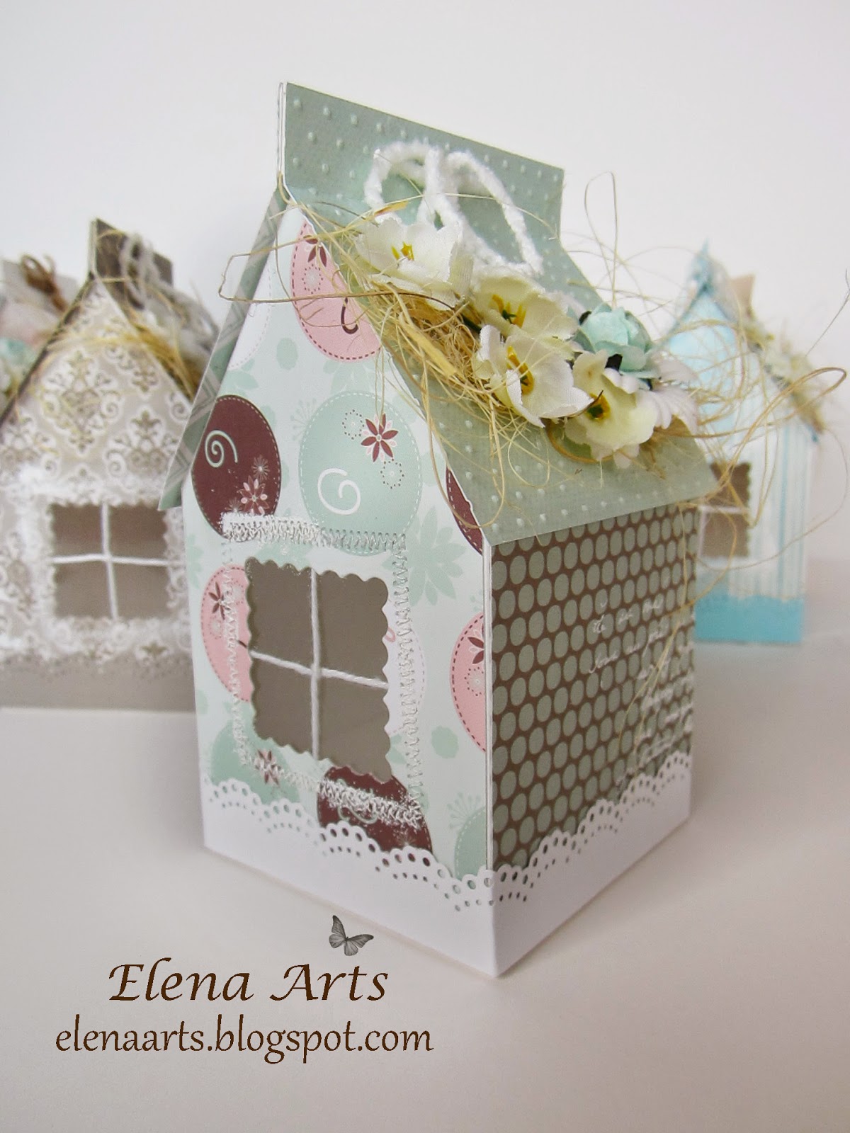 Hoy me gustaría enseñaros unas cajitas en forma de casa que hice para un evento. Dentro se podría poner unos bombones o algún pequeño regalito y seguro que resultará un detalle muy especial para alguien especial. El tamaño es de 8x8x15 cm, con una ventana hecha con el plástico transparente y una puerta trasera.