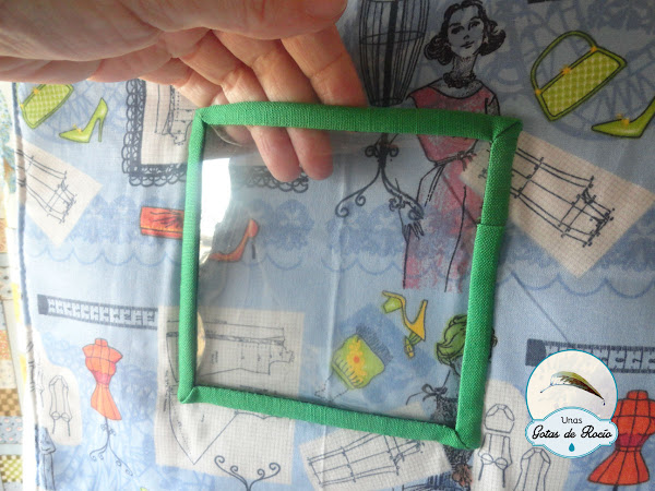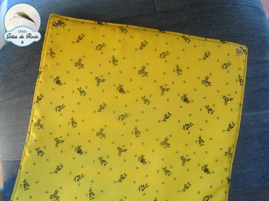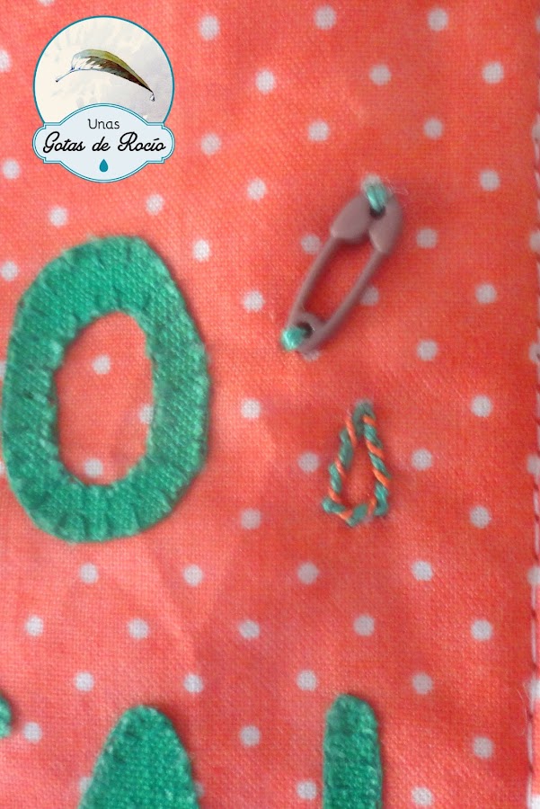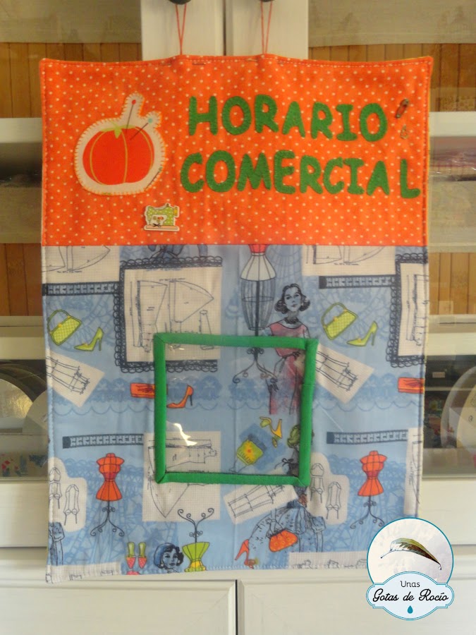 Puesto que el horario de verano cambia respecto al de invierno he preparado un bolsillo transparente donde colocar una cartulina donde se puedan reflejar todas las modificaciones de horario oportunas. Y el bolsillo lo he ribeteado con la misma tela de las letras.