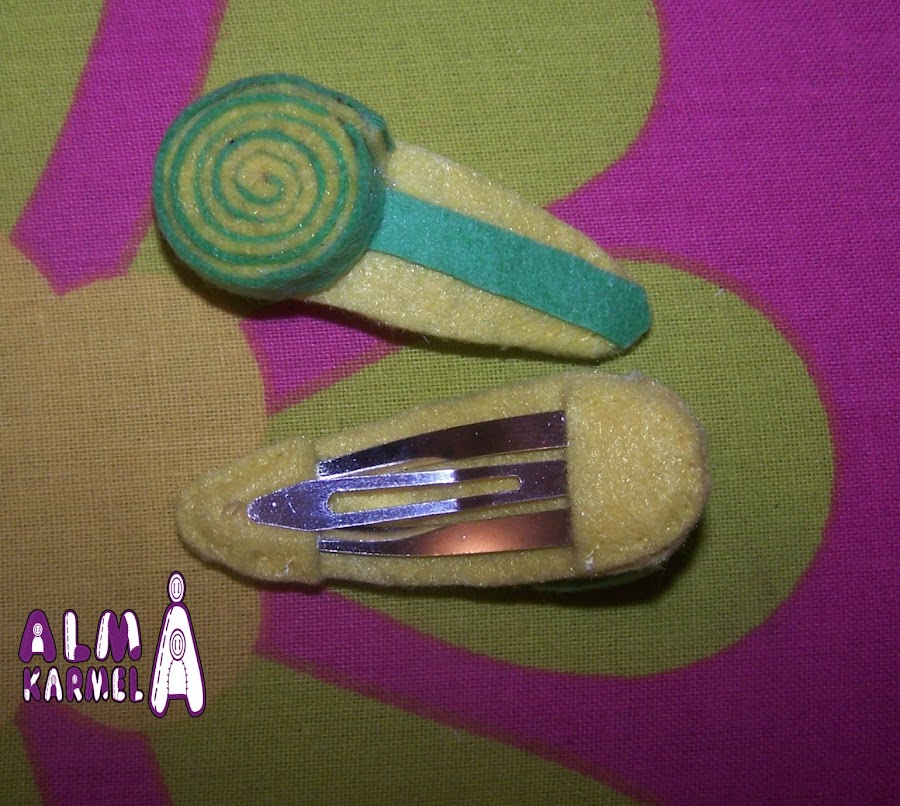Estas están realizada en fieltro de color amarillo y verde, adornadas con una sabrosa piruleta.