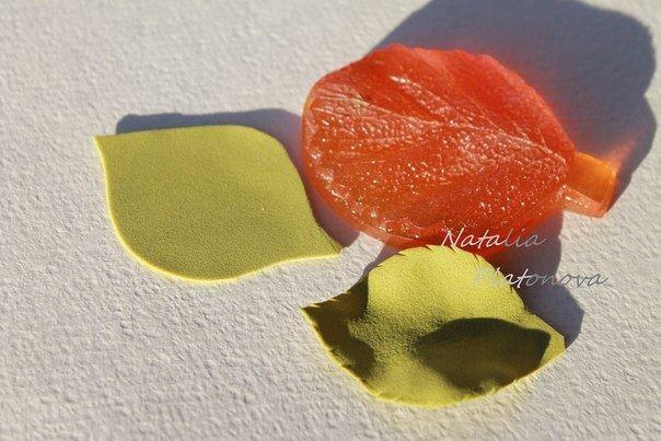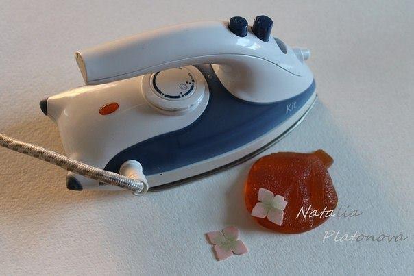 Para darle un lindo y natural relieve a las flores primero las vamos a calentar con la plancha y luego apretar fuertemente hacia un molde de silicona.
