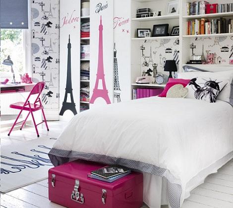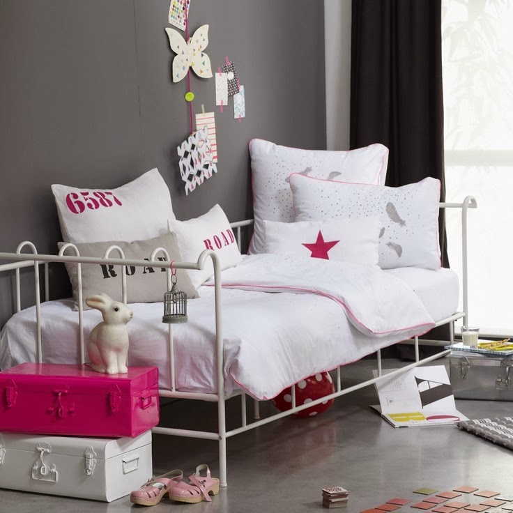 Ellas dormían juntas hasta ahora pero recientemente han querido tener cada una su propia habitación y esto ha supuesto una verdadera " revolución" en mi casa, ya que he tenido que desalojar de trastos la otra habitación. He tenido que tirar, tirar y tirar...desmontar un armario, cambiar la ropa de sitio...en fin...que llevo una temporada ordenando y ahora que más o menos está todo en su sitio toca la parte bonita: decorar. Como yo soy muy DIY me he propuesto hacerlo yo todo empezando por pintar las paredes. Estoy mirando un montón de fotos en Pinterest y seleccionando las que más me gustan, como estas...