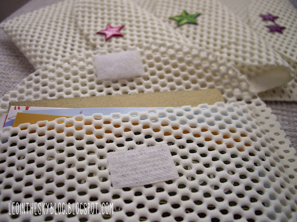 Para cerrar la solapa pegué un trocito de velcro y para adornar sólo he utilizado estas pegatinas de estrellas...