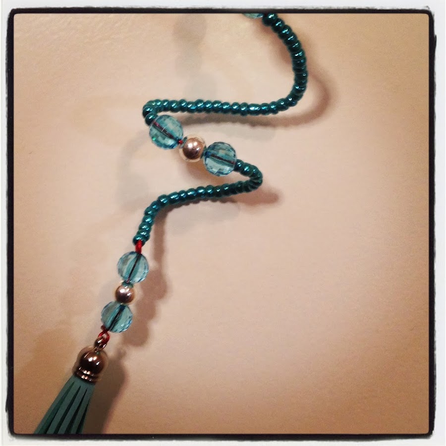 Yo he usado una borla para empezar el colgante, podeis poner lo que mas os guste, algún abalorio grande, una piedra, etc....como veis he cogido la borla y la he enganchado al alambre haciendo una arandela. Si quereis haceros vuestra propia borla (esta es comprada) podeis seguir las instrucciones en este ENLACE.