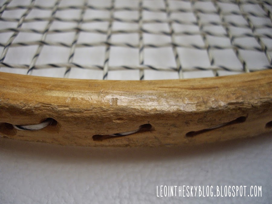 Y una raqueta hecha polvo, era de mi hermano y se ve que el hombre le daba a la pelota más con el borde que con la red., porque está machacada...